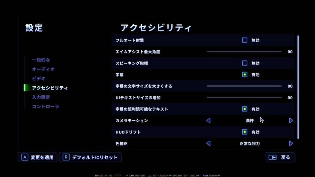 アクセシビリティで字幕の超判読可能なテキストにチェックを入れる